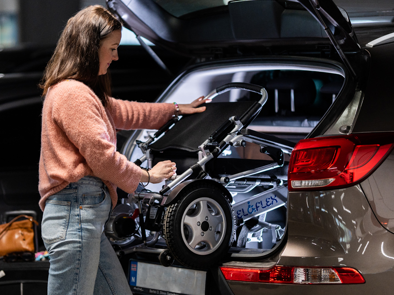 Eloflex passer i alle typer biler. Nå kan du reise med en venn, ta en vanlig taxi eller leie en bil uten å bekymre deg for problemer med den elektriske rullestolen. Den lave vekten gjør det enkelt å laste inn i egen bil.