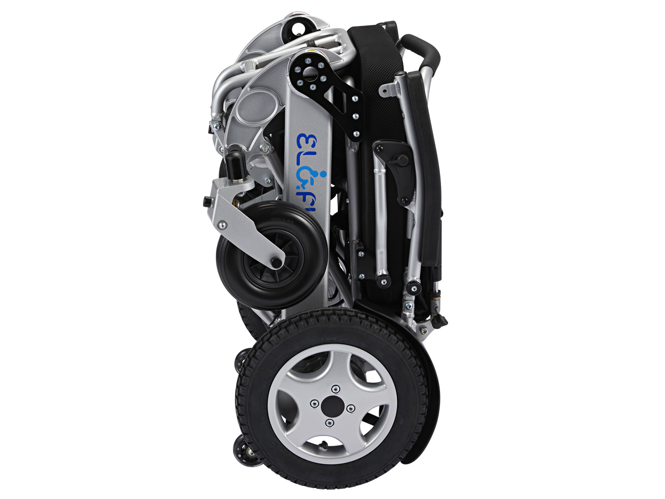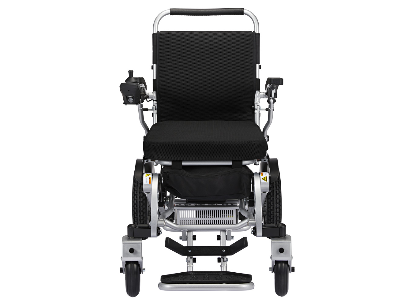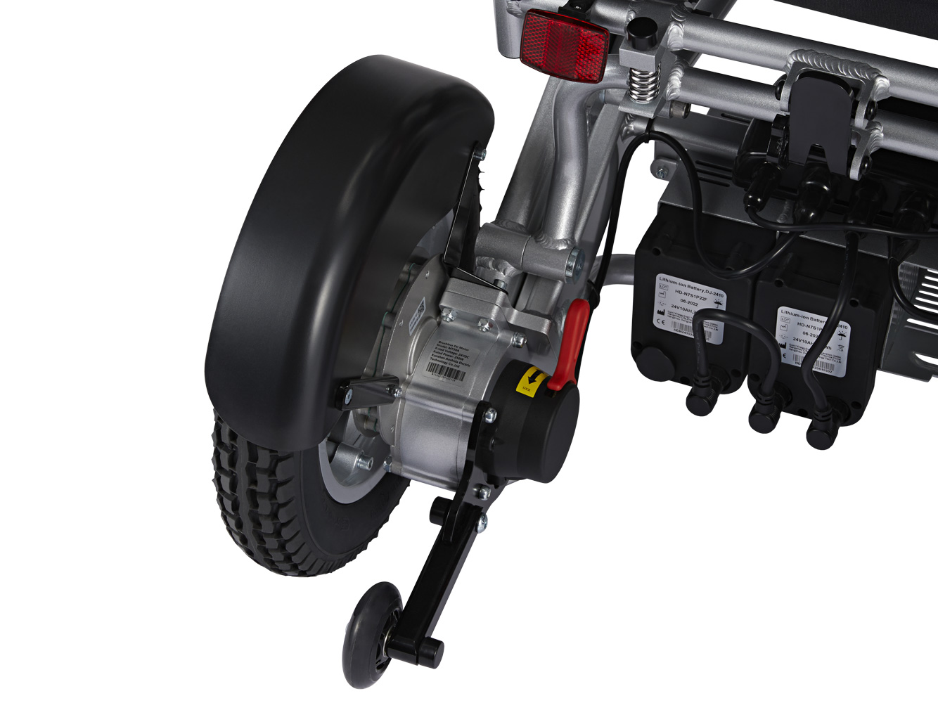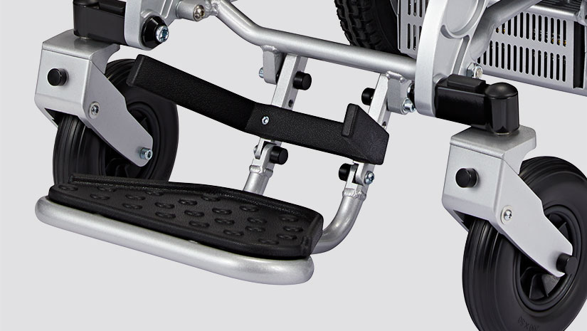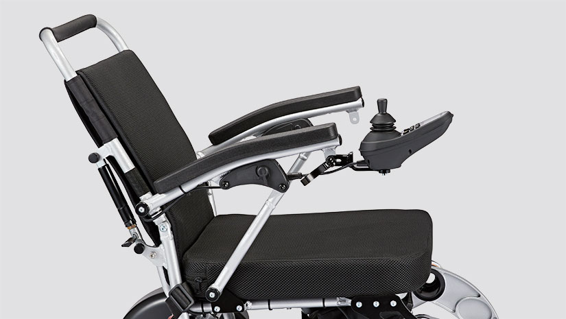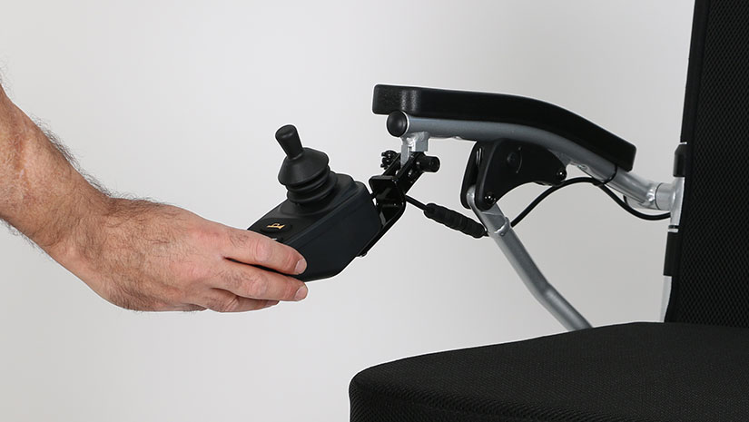 Det er lagt stor vekt på ergonomi og brukervennlighet. Det smarte joystick-festet legges ned og fører deg nærmere kanten av bordet, og fotstøtten legges pent bort når du sitter eller står. Store luftfylte bakhjul og fjærbelastet demping i forakselen sikrer god støtdemping, selv på ujevne underlag.