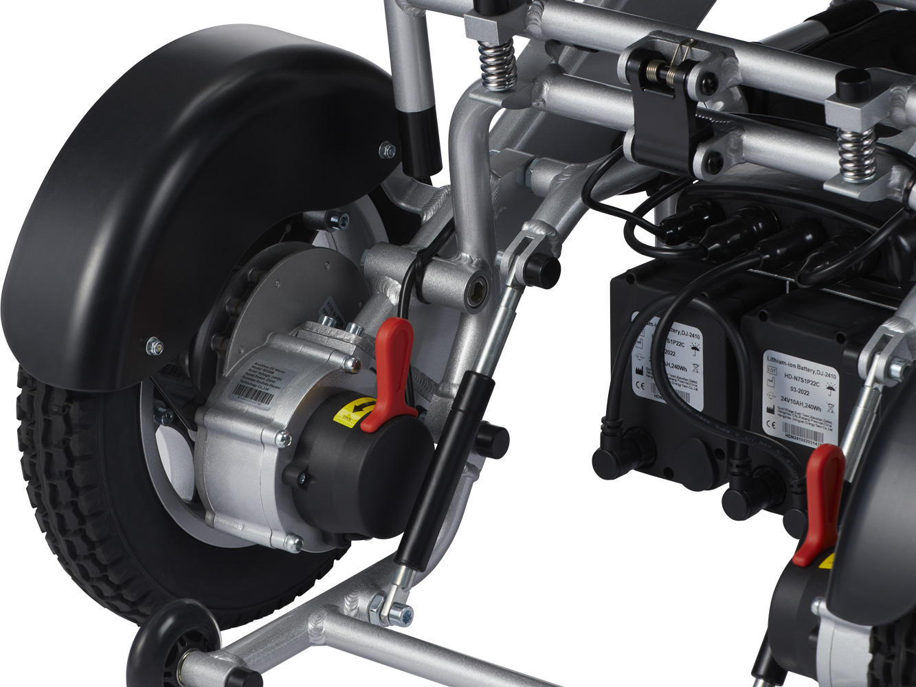 Med to robuste 250-watts motorer bruker denne modellen banebrytende børsteløs teknologi, noe som reduserer strømforbruket og vekten. Resultatet? Lengre rekkevidde og en bedre kjøreopplevelse.