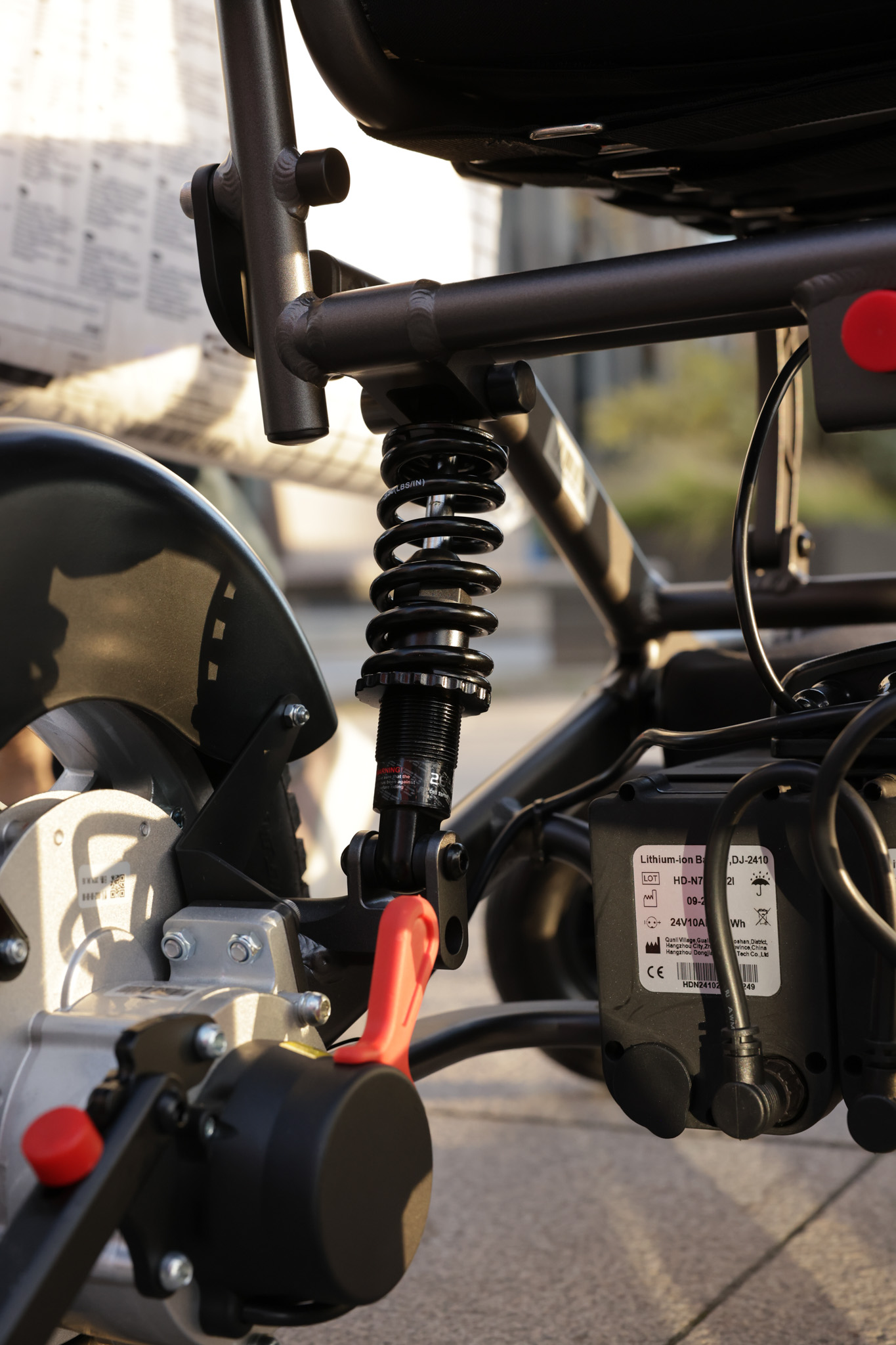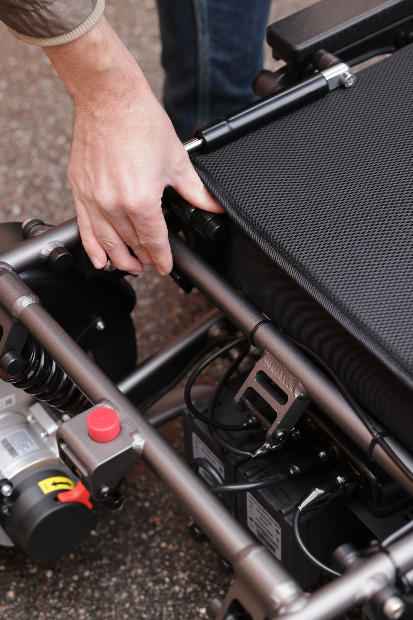 Med fjæring på alle fire hjulene og effektiv demping på bakhjulene sørger denne stolen for en jevn og behagelig kjøring. Kjørekomforten forbedres ytterligere av det spesialkonstruerte, stive og robuste understellet.
