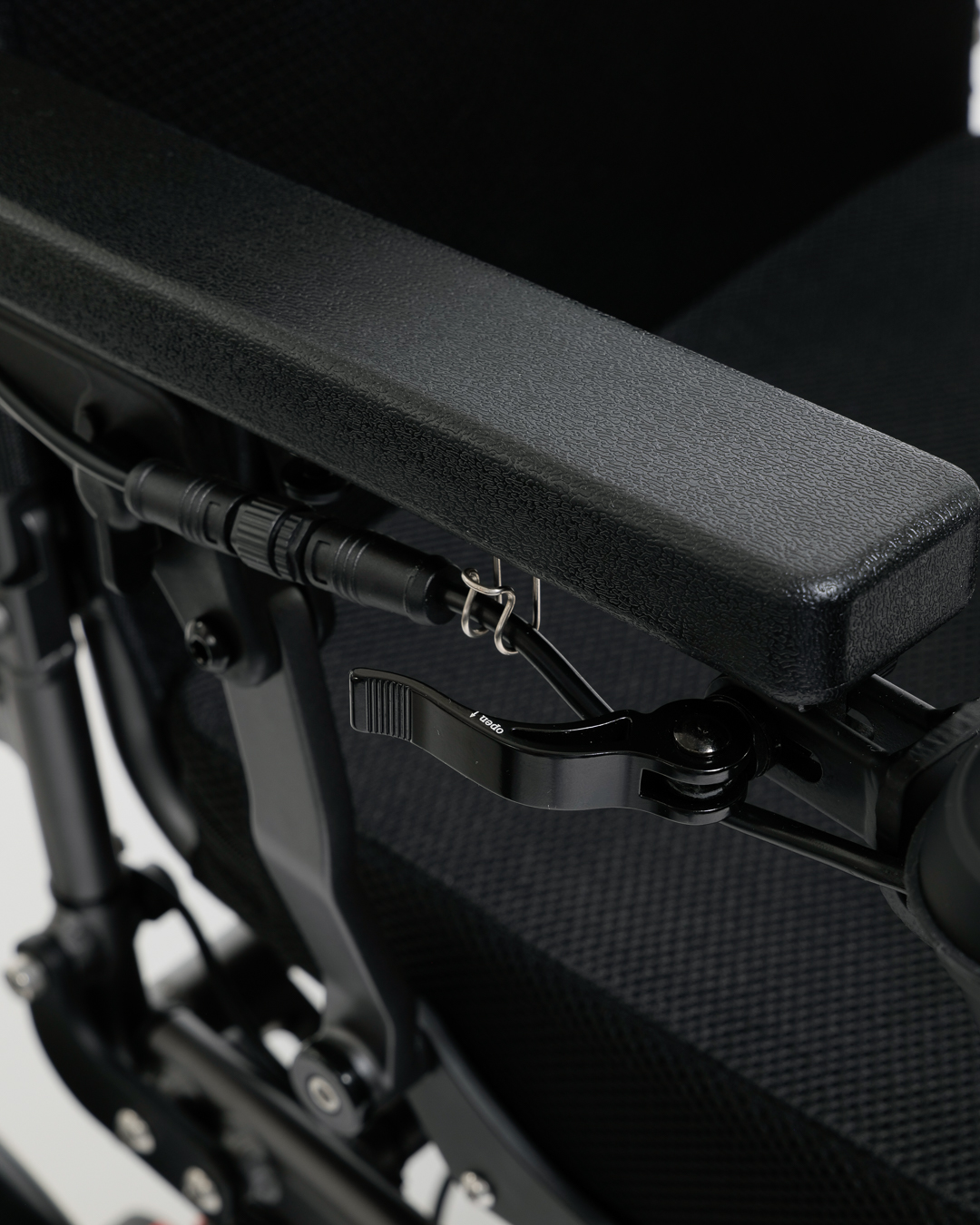 Justerbare armlener og fotstøtter gir en mer skreddersydd passform og forsterker modellens fokus på komfort. Med tre batterifatninger tilbyr denne modellen utvidet brukstid for lengre turer. Når den er sammenfoldet, holder et praktisk sikkerhetslås rullestolen låst i sammenfoldet posisjon for enkel transport og oppbevaring.