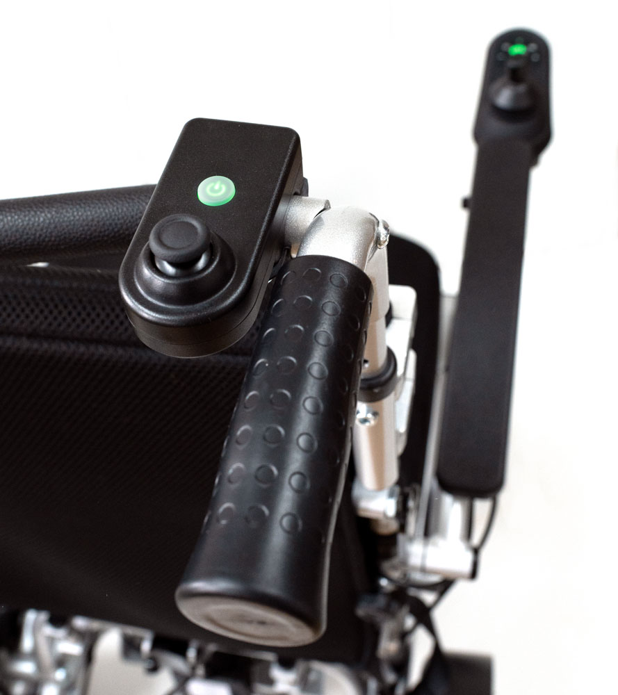 Er du venstre- eller høyrehendt? Ikke noe problem. Med vårt tilhørende kontrolloppsett kan du velge om settet skal plasseres på høyre eller venstre side for å passe til dine preferanser. Tommelstyrespaken drives av den elektriske rullestolens standardbatterier og kontrollboks, noe som eliminerer behovet for å lade den. Dessuten bruker den ikke ekstra batteristrøm, noe som sikrer at Eloflex opprettholder sin utvidede rekkevidde. Totalvekten til ledsagersettet, inkludert styrespaken, er 1,5 kg. Eloflex