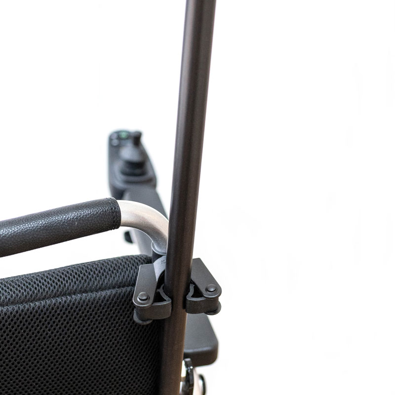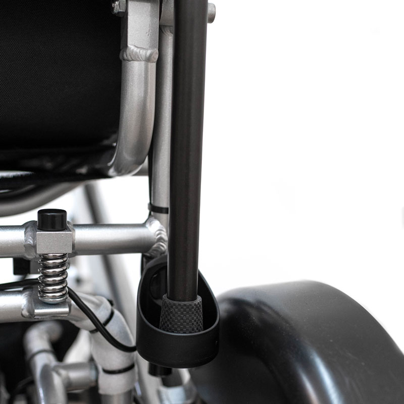 Eloflex krykkeholder er et uunnværlig tilbehør for personer som søker en komfortabel løsning for å ta med seg krykker eller en stokk. Krykkeholderen passer til alle krykker og stokker med standard mål og trenger ikke justeres hvis du veksler mellom forskjellige stokker eller krykker. Du fester krykkeholderen ved hjelp av de medfølgende Torx-skruene, som kan festes til rammen på Eloflex.